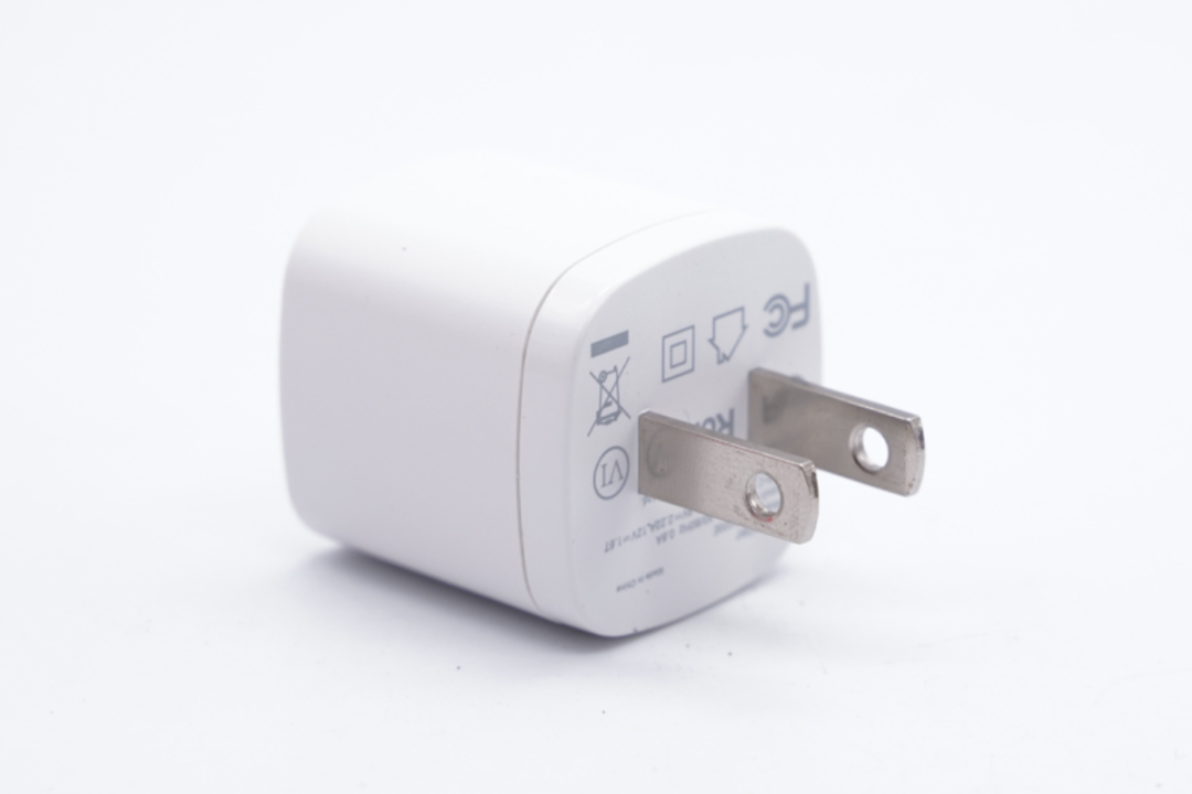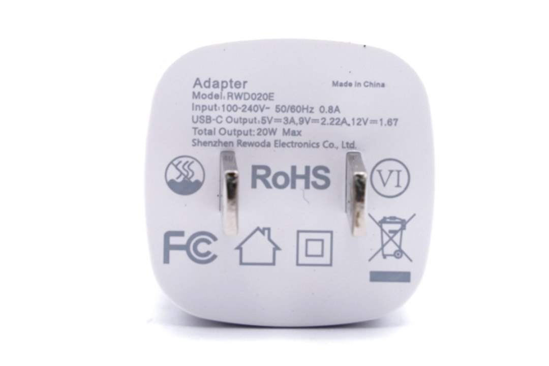 瑞嘉达mini 20W充电器采用两脚美规插脚,固定插脚设计,尽可能将内部空间利用率最大化,达到小巧密度高的目的。