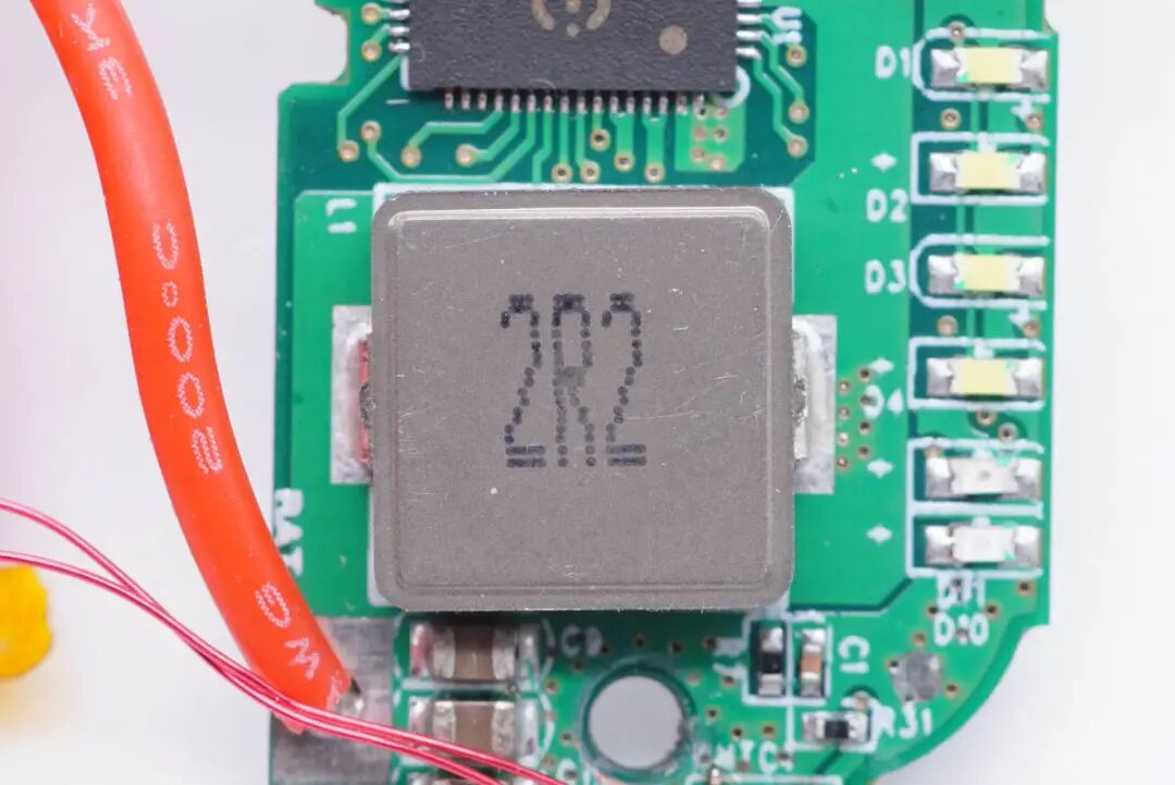 2R2升降压电感,配合主控芯片升降压实现移动电源充放电。