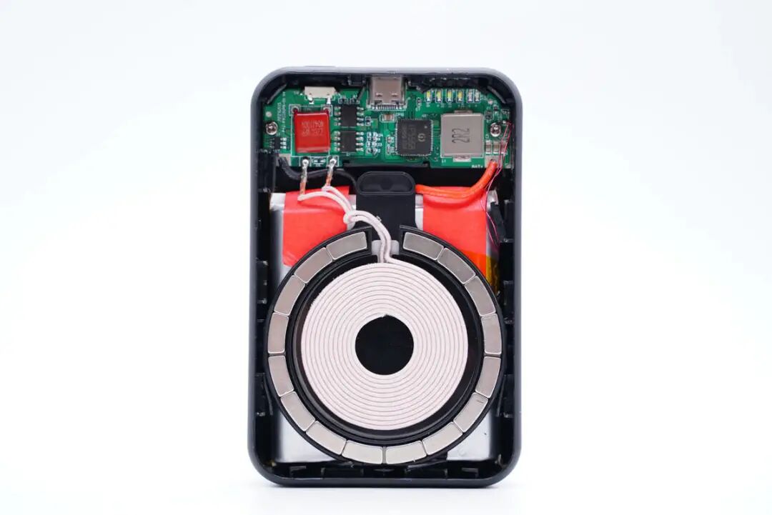 无线充电线圈绕制紧密,小磁铁也固定得很牢固。