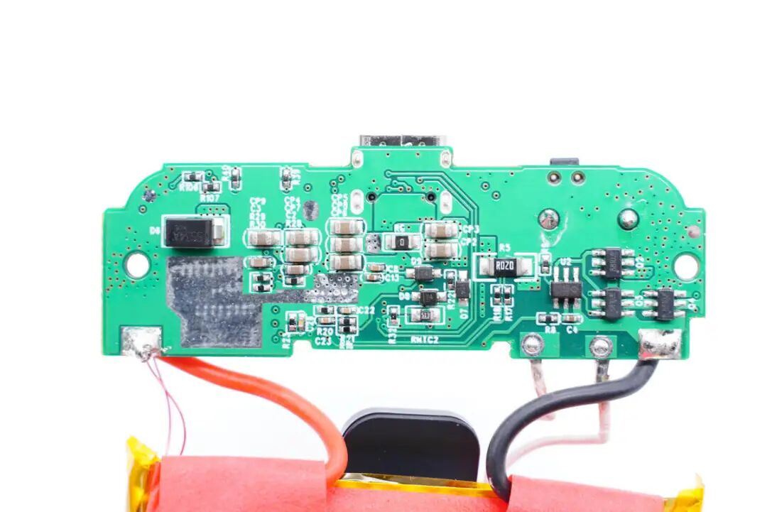 背面左侧露铜加锡增强散热,右侧设有锂电保护电路。