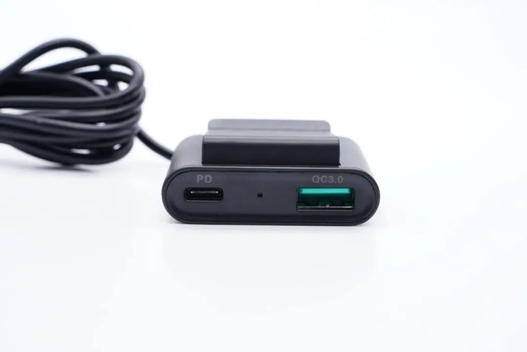 机乐堂这款车充由车充本体以及扩展的背夹组成,连接线缆长约1.5米,因此满足车内前后排多人同时充电不是问题。车充本体配备2A1C接口,支持18W和27W快充,可以满足司机和副驾驶人员的手机以及行车记录仪等设备充电。