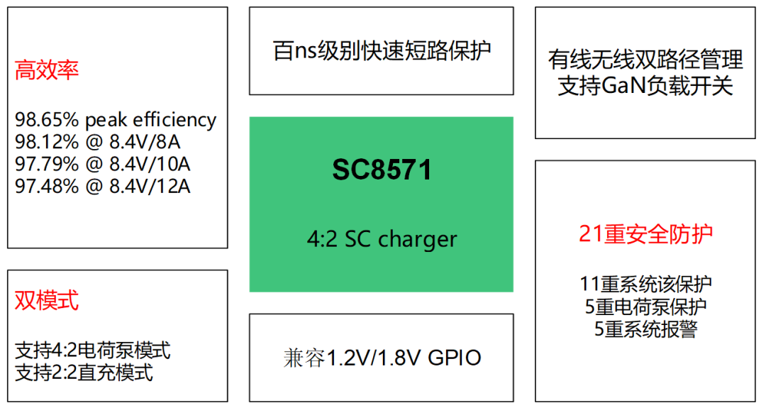 SC8571内部集成多达21重安全防护措施,为用户的充电安全保驾护航
