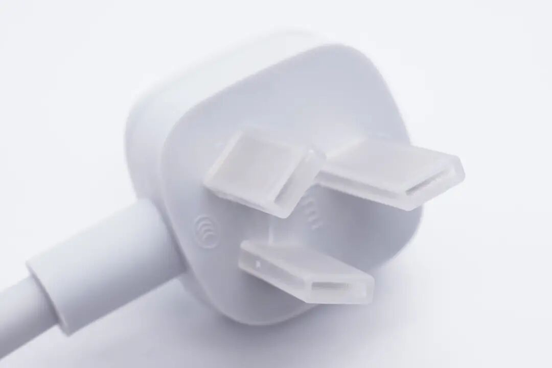 插头的插脚套有塑料套保护。