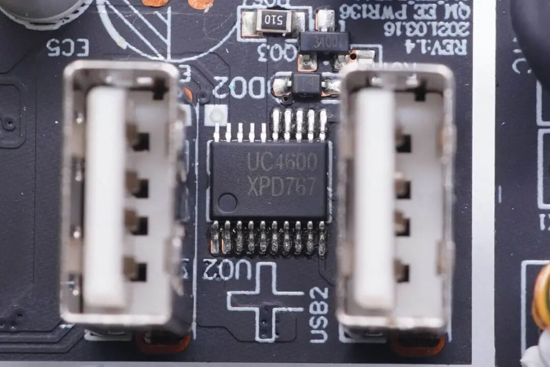 丝印UC4600协议芯片,用于另一个USB-A口输出电压控制。