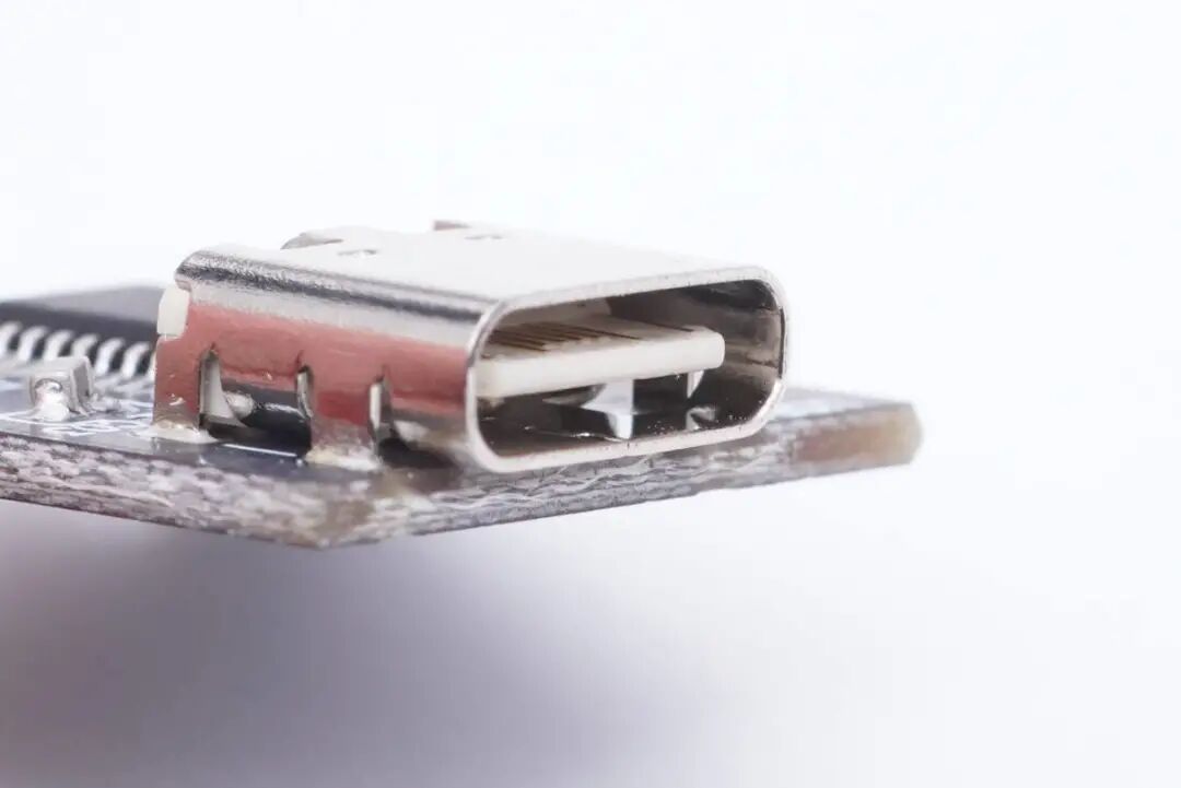 USB-C母座特写,过孔焊接。