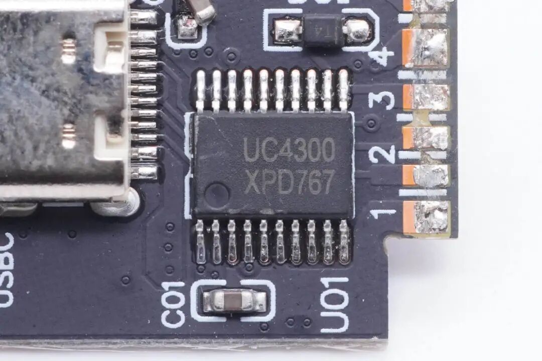 丝印UC4300协议芯片,用于1A1C接口输出电压控制。