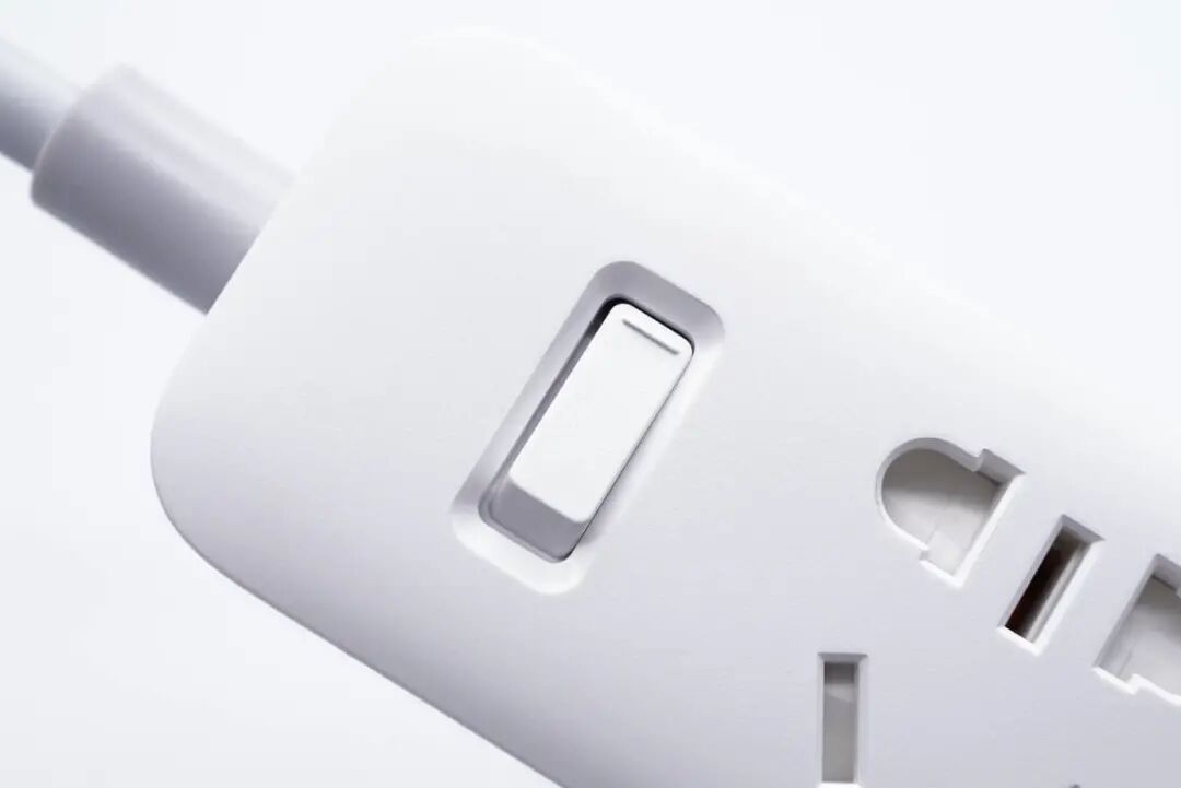 小米这款延长线插座采用长条直板造型,小巧纤细不占用桌面空间,机身顶部以及底部外壳磨砂,侧身亮面处理,边缘过渡明显。机身顶面配有3个3+2新国标插孔和2A1C三个USB接口,可同时为6台设备供电。