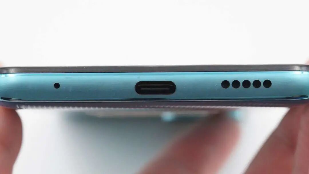 底部设有USB-C口、麦克风孔和扬声器孔。