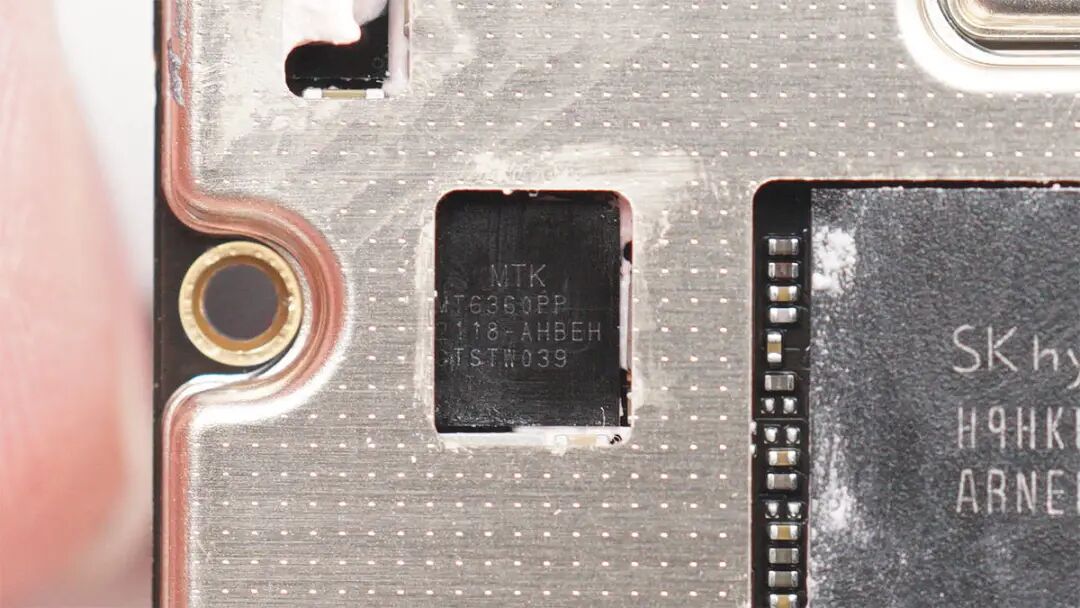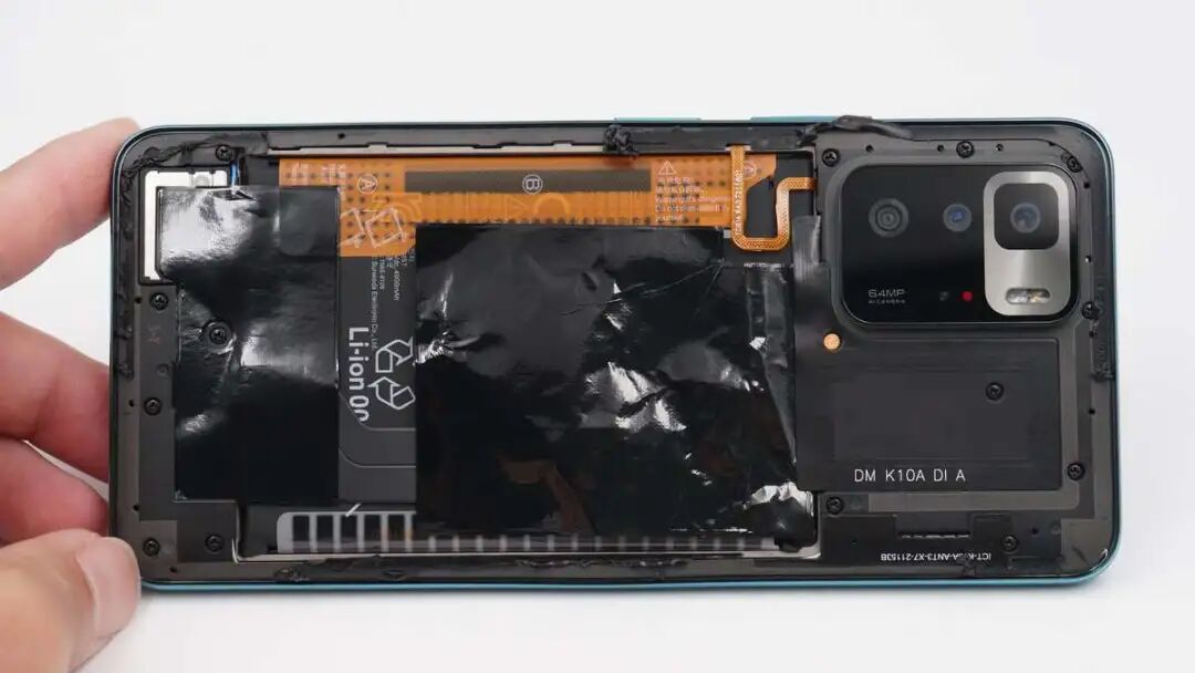 主板区域覆盖塑料壳,塑料壳和边框一体式设计,后摄模组周边有多颗螺丝固定。