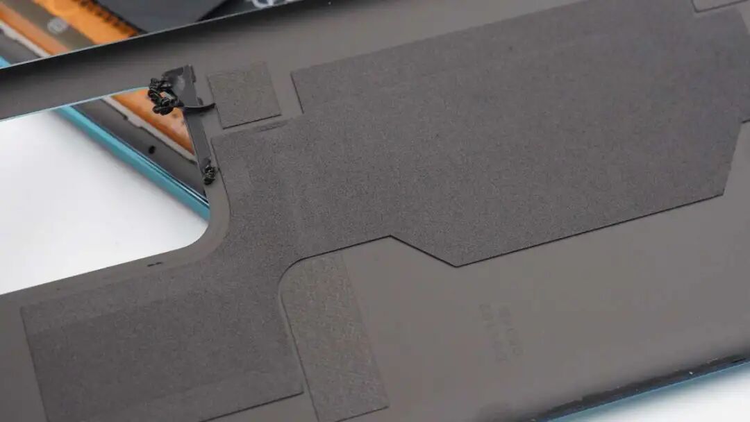 覆盖主板的塑料壳上也贴有石墨散热贴纸,对应摄像头的凹槽内贴有保护泡棉密封。
