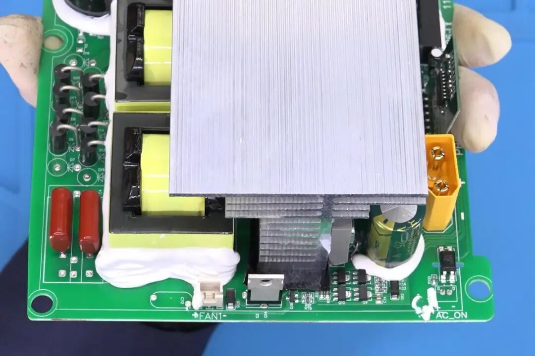 充电头网通过拆解发现,这款户外电源内置两个散热风扇,可以给内部进行主动散热,保证大功率输出发热问题。此外拆解发现户外电源采用60颗18650汽车级动力电芯,从加固、绝缘、温控、均流等各方面对电池组进行保护。