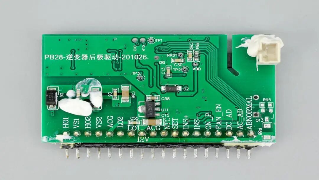 小板另一面,是逆变器的输出调制,一颗单片机搭配两颗驱动器。