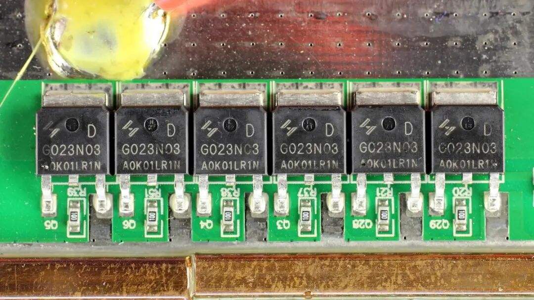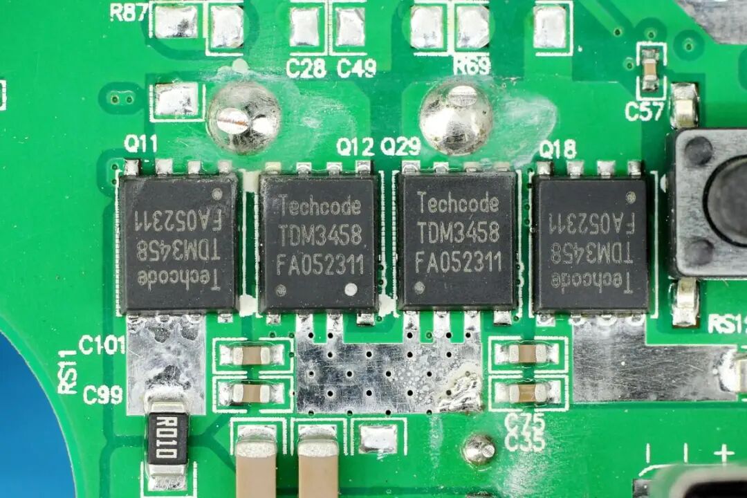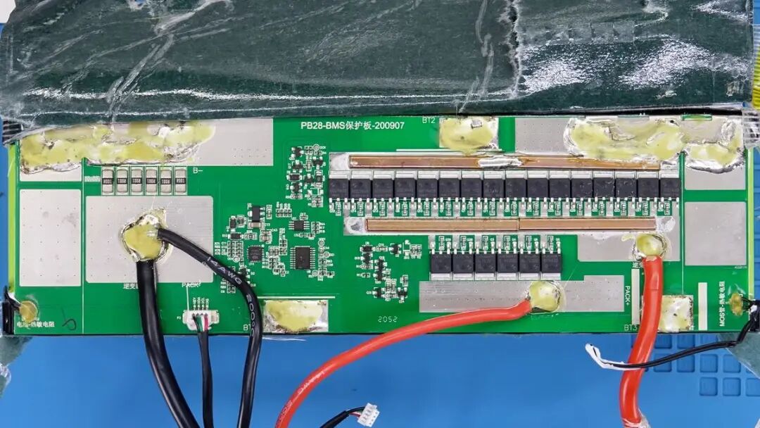 撕掉可以看到下面是电池组保护电路板,板子多处露铜加锡处理,增强散热,MOS管处焊接铜带均流。