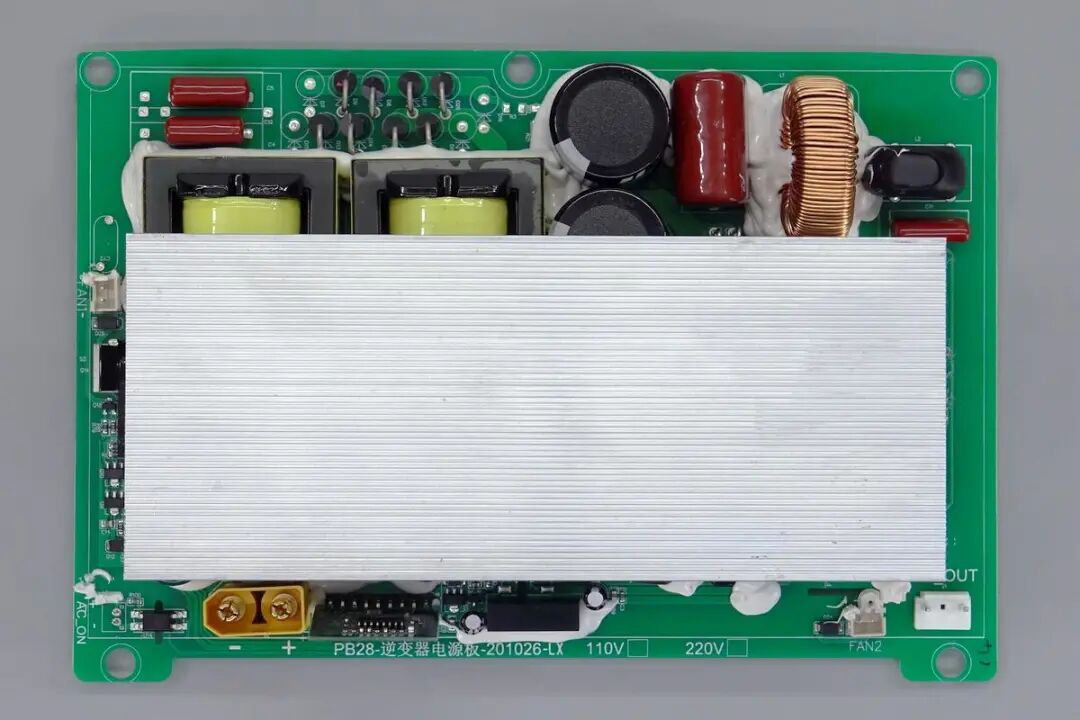 板子另一侧设有逆变升压变压器、电容、电感等器件,而且打胶加固。