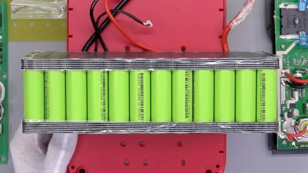电池组上下均覆盖青稞绝缘纸,框架包裹绝缘胶带,一排电池一共12颗。