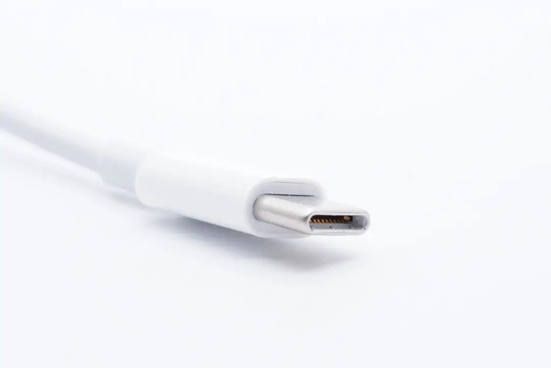 USB 3.0插口特写,白色舌片前端有一排触点。