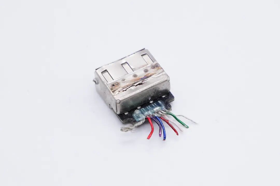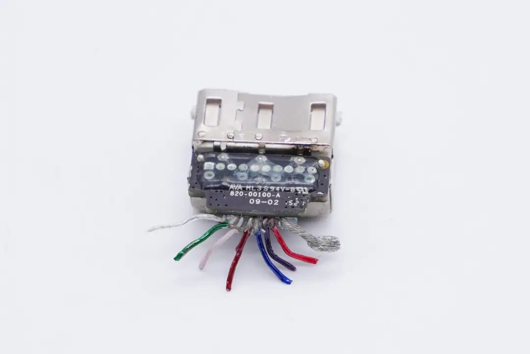 拆完可以发现,苹果这款USB-C to USB转换器并没有什么复杂的设计,两头拆开都没有看见芯片。不过做工方面则保持苹果的高水准高要求,U两头内部都套有金属壳点焊加固和保护,线缆内置凯夫拉抗拉线,此外采用同轴线进行输出传输,线缆内部有屏蔽网增强抗干扰能力。