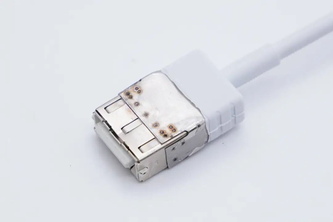 将USB-C线头也拆开,设计上和另一端没多大区别,小板上也没有控制芯片。