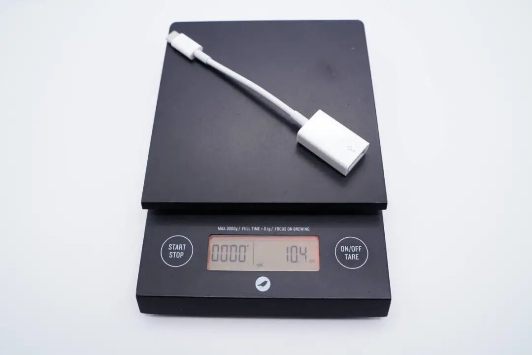 整个转换器像一条短数据线,只不过一端设计成USB插口,整体为白色配色。