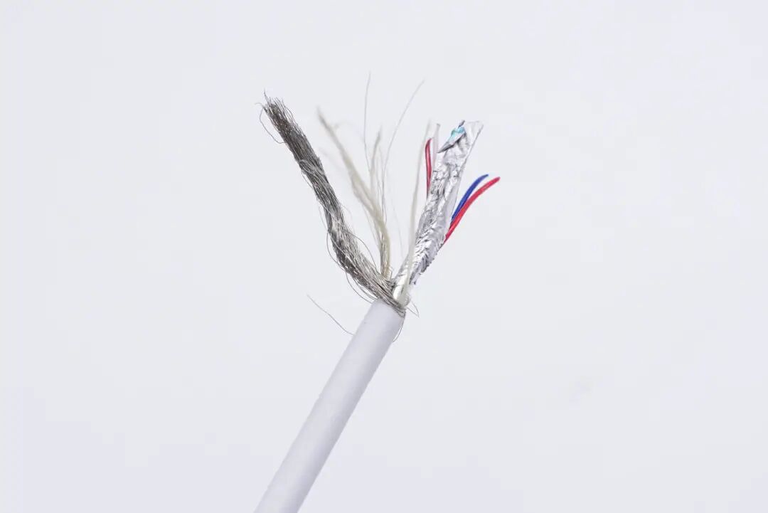 将线缆外皮剪掉,可以看到其中一根电力线芯置于外层,此外还有凯夫拉抗拉线。