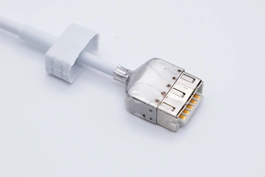 线头外壳亮面设计,两侧为半圆弧面,线缆做了抗弯折处理。