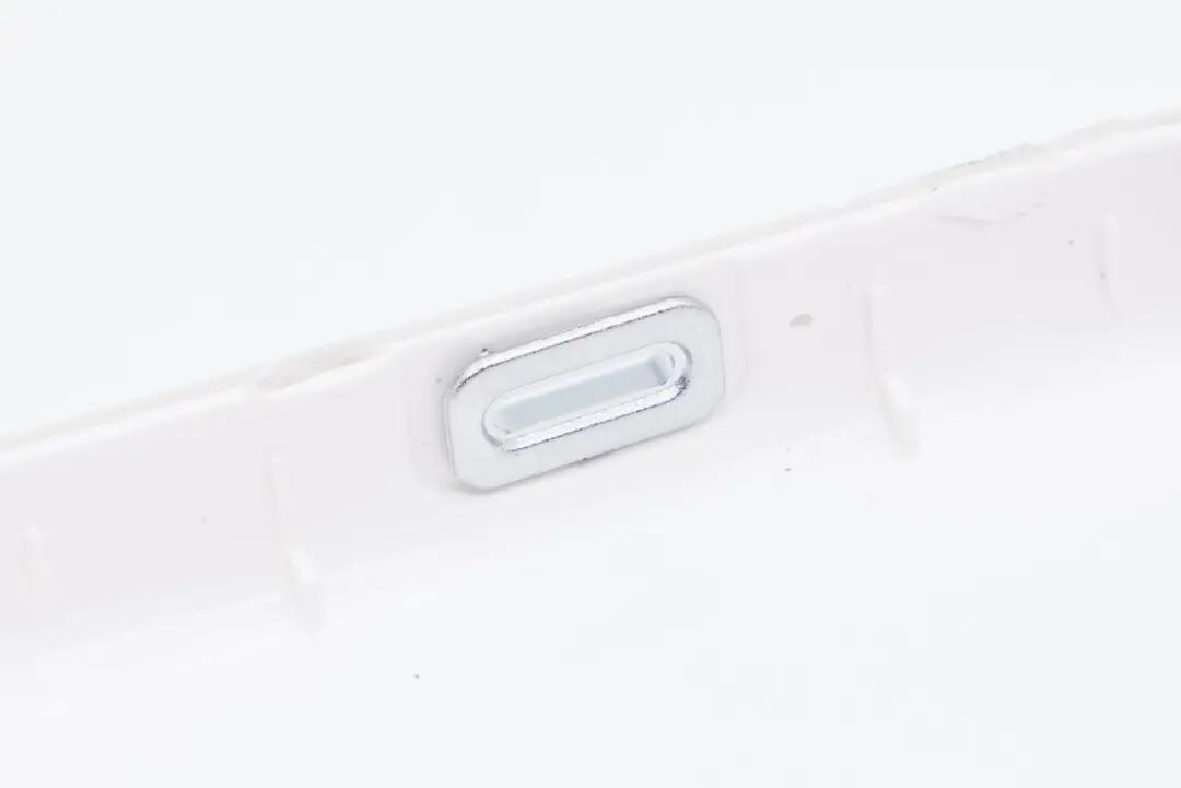 输入端为Lightning接口,同时也采用了金属环装饰,旁边是一颗指示灯。