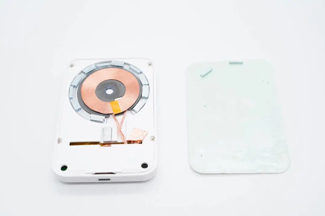 无线充电线圈特写,利兹线绕制,比较薄节省空间,可以放下更大容量的电池。