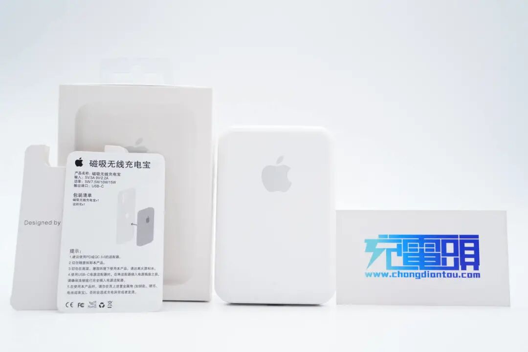 包装方面,华强北版MagSafe磁吸无线充电宝和苹果原装行动电池的包装基本保持一致,正面是产品外观图片、苹果logo、MagSafe等都是一应俱全。