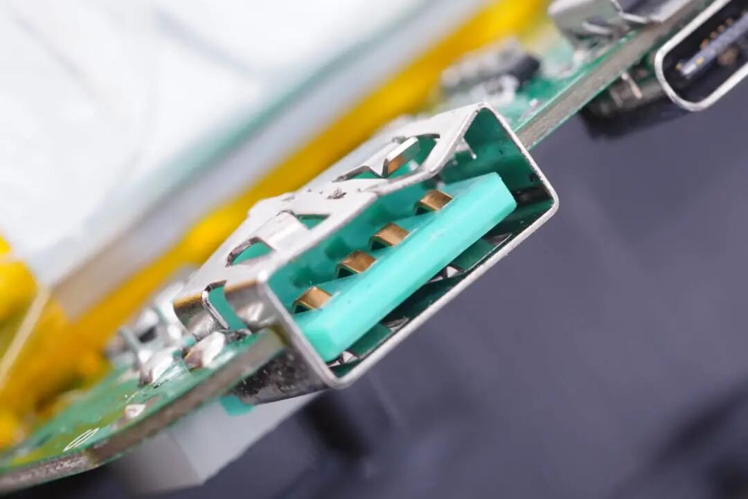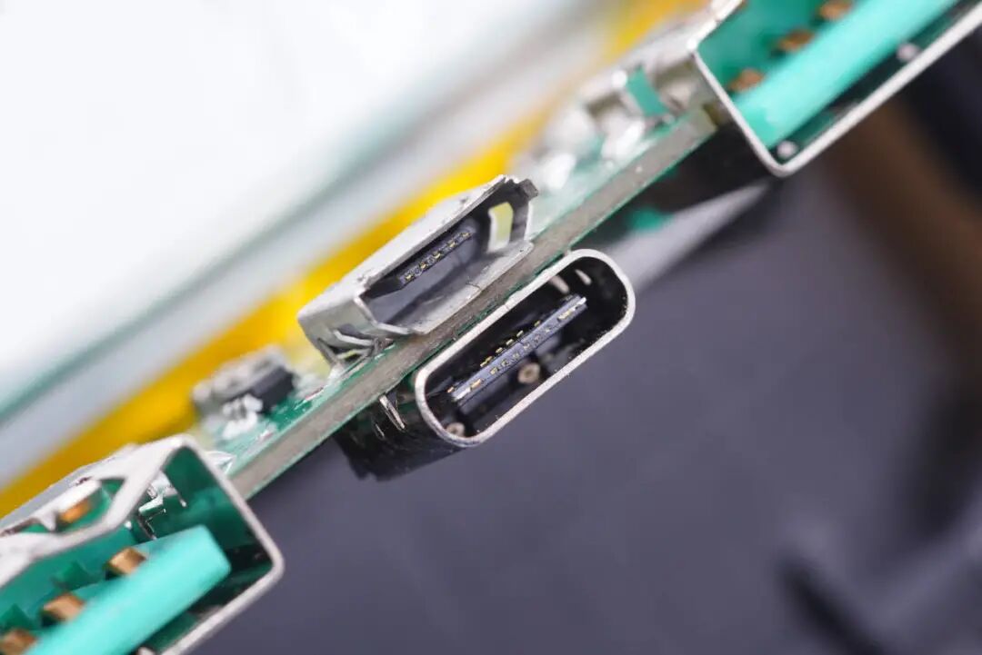 USB-C和Micro USB母座焊接在小板两面,节省空间降低厚度。