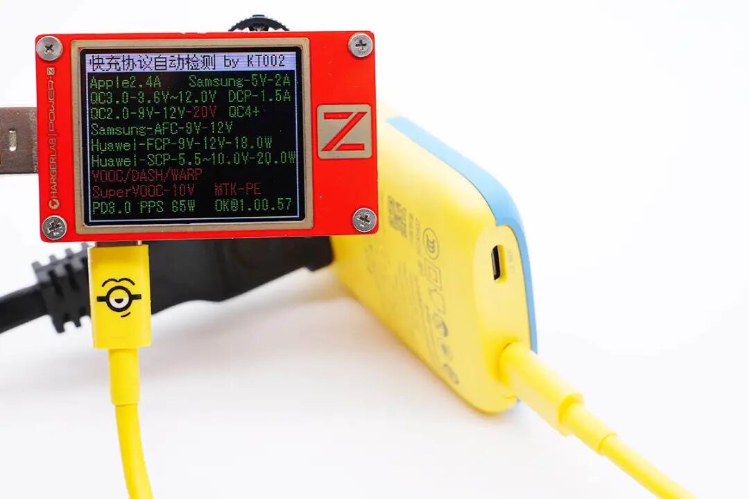 PDO报文也完全相同,即C1和C2口单口输出性能一样,都支持65W快充,支持功率盲插。
