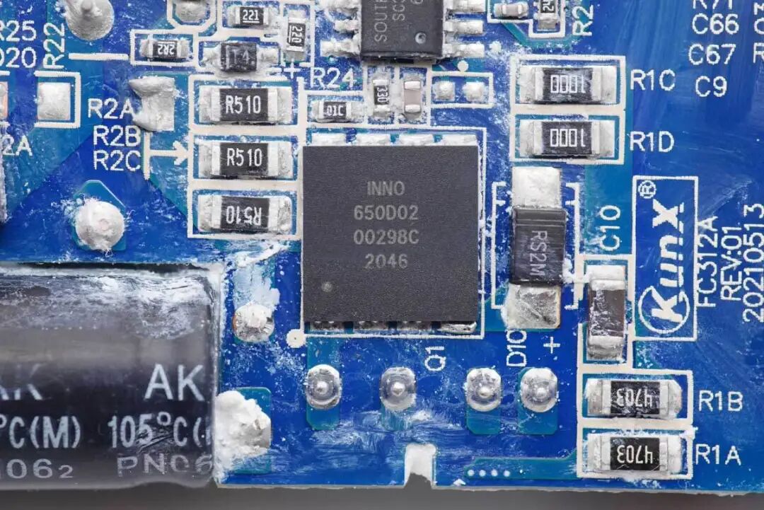 充电头网拆解了解到,该芯片已经被威源新能30W 1A1C氮化镓快充、古石科技迷你30W氮化镓快充、科讯迷你33W氮化镓快充、意象65W氮化镓充电器、努比亚30W氮化镓快充、华科生65W 2C1A氮化镓快充充电器采用。