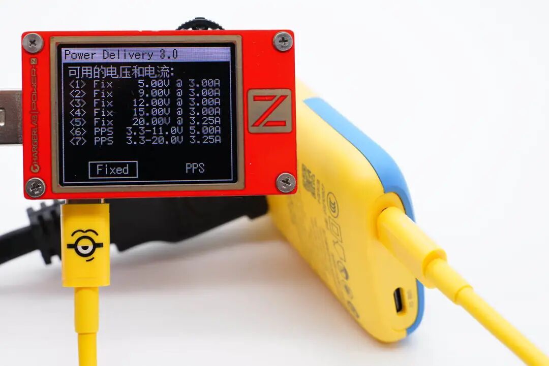 同时测得C1口具备5V3A、9V3A、12V3A、15V3A、20V3.25A五组固定电压档位,以及3.3-11V5A和3.3-20V3.25A两组PPS电压档位。