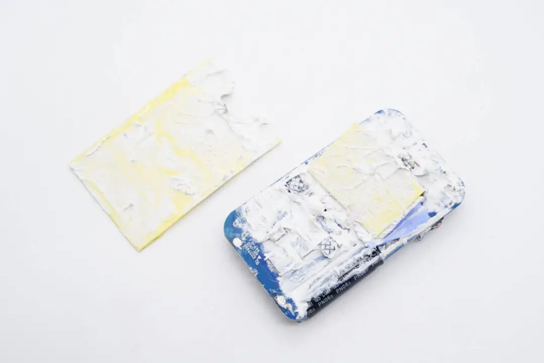 将硅胶清理干净,PCB板背面覆盖黄铜散热片,散热片粘贴绝缘胶带。