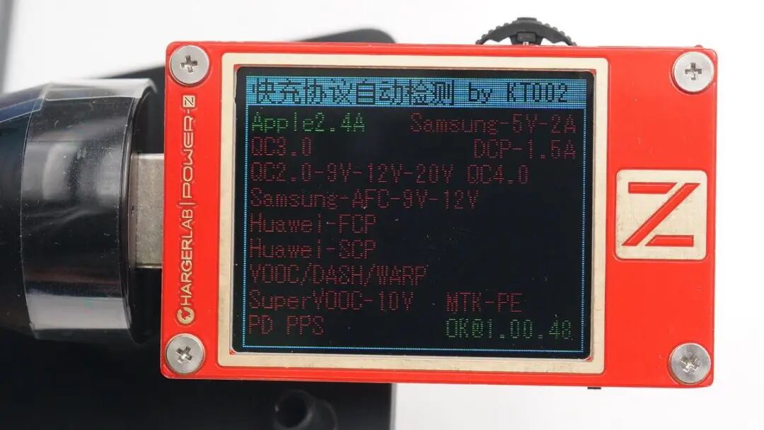 使用ChargerLAB POWER-Z KT002检测,两个接口的输出协议相同,均只支持Apple 2.4A协议。
