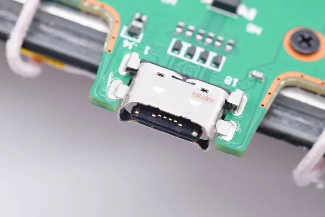 USB-C母座特写,沉板过孔焊接。