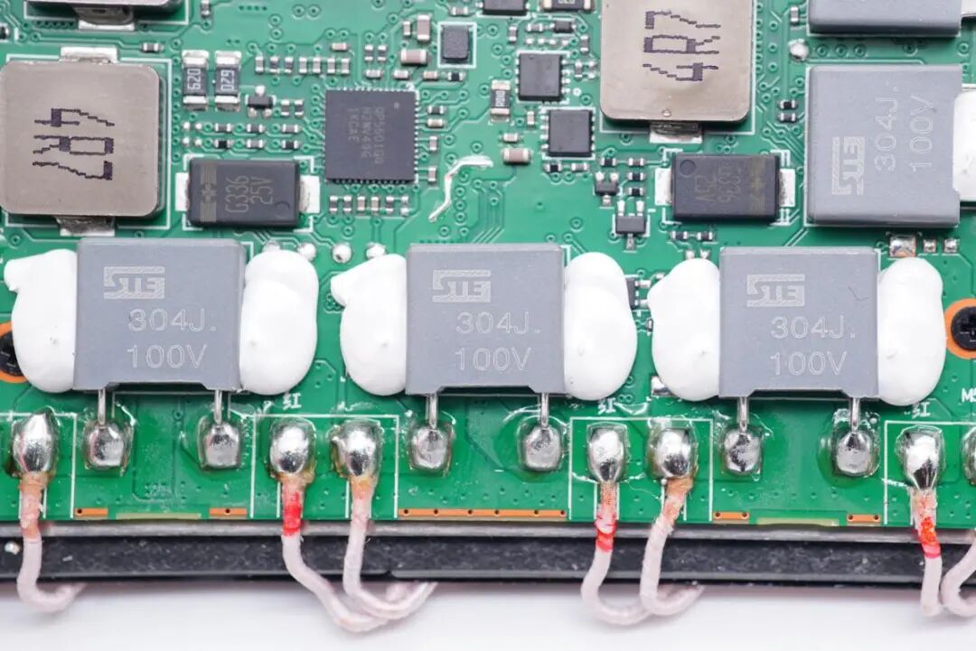 板子边缘13颗谐振电容均来自STE,规格都是100V 304J。