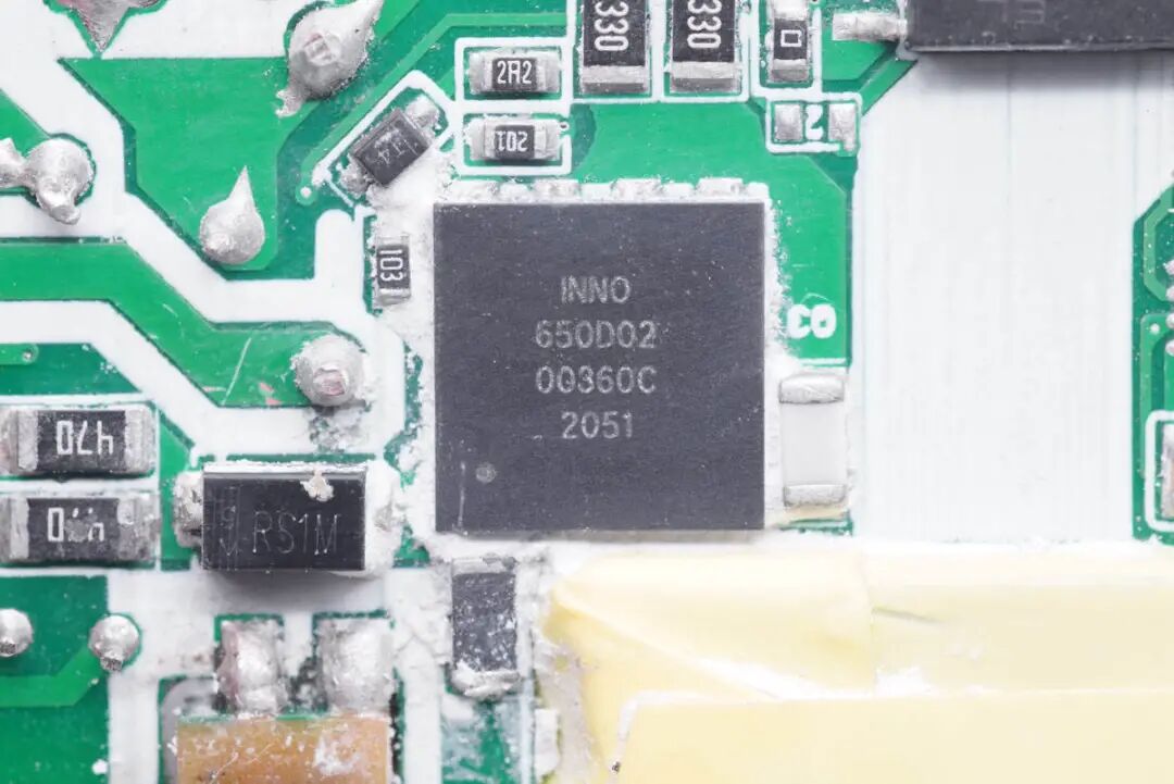 充电头网拆解了解到,该芯片已经被威源新能30W 1A1C氮化镓快充、古石科技迷你30W氮化镓快充、科讯迷你33W氮化镓快充、意象65W氮化镓充电器、努比亚30W氮化镓快充、华科生65W 2C1A氮化镓快充充电器采用。