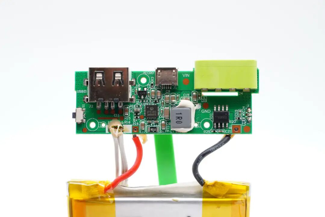 移动电源主控芯片采用英集芯IP5189,这是一款集成升压转换器、 锂电池充电管理、电池电量指示的多功能电源管理SoC,可为移动电源提供完整的电源解决方案。