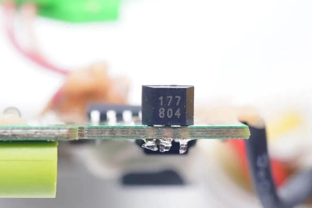 小板另一面焊接输出线缆,左边还有一颗芯片。