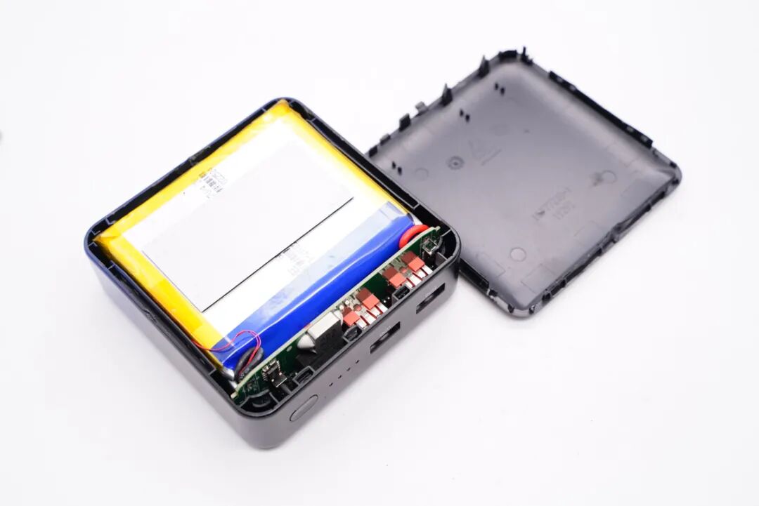 打开移动电源的外壳,可以看到内部的电芯和PCB模块。