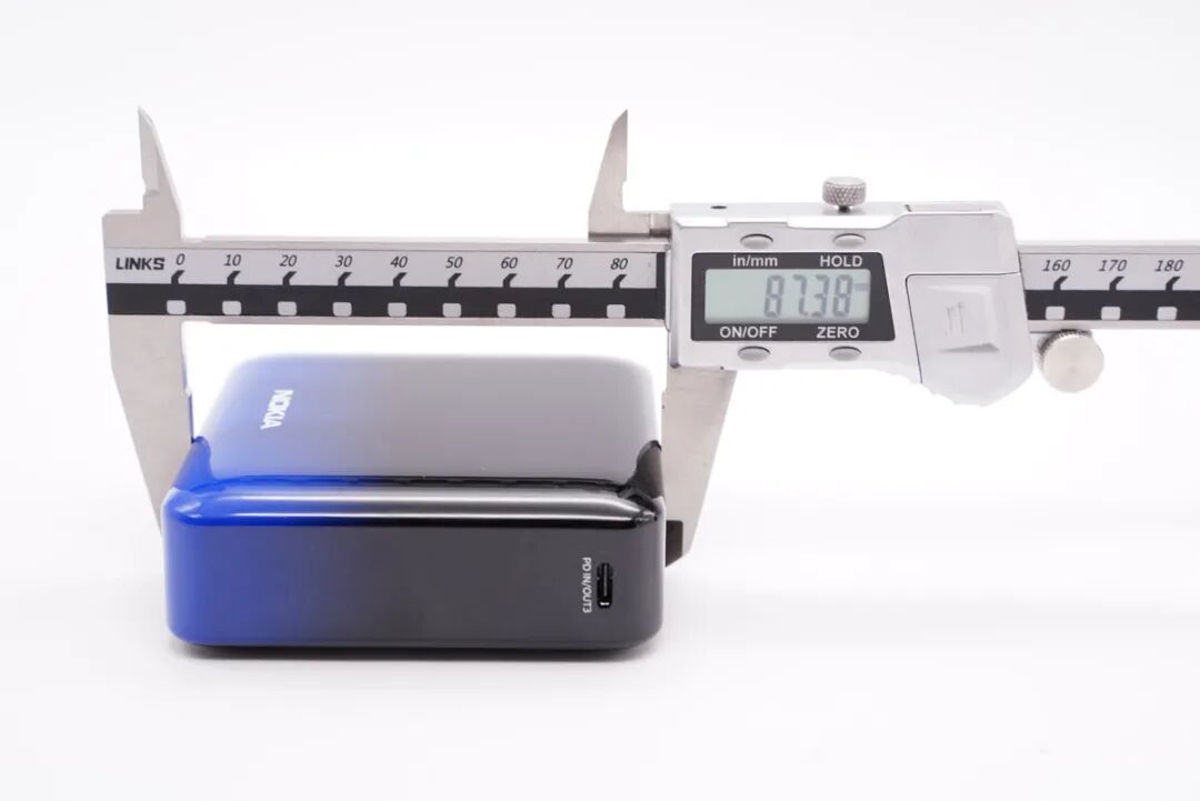 诺基亚移动电源与iPhone 13 Pro体积对比。