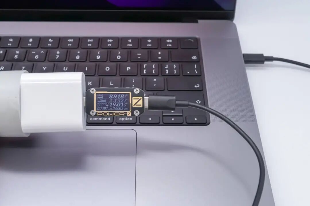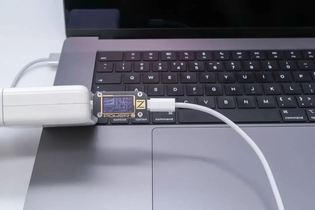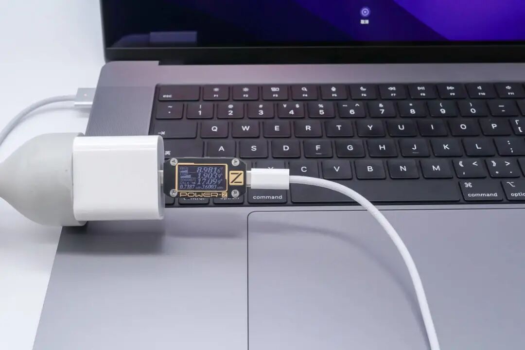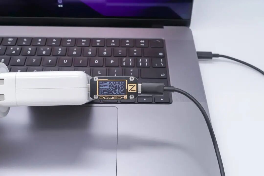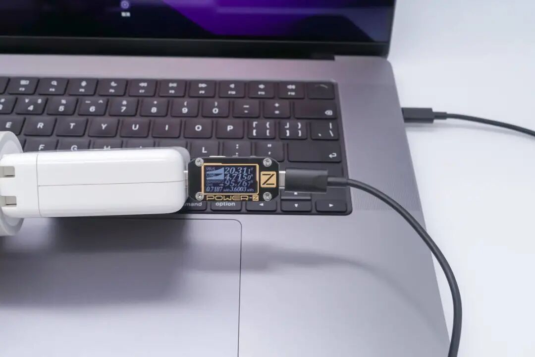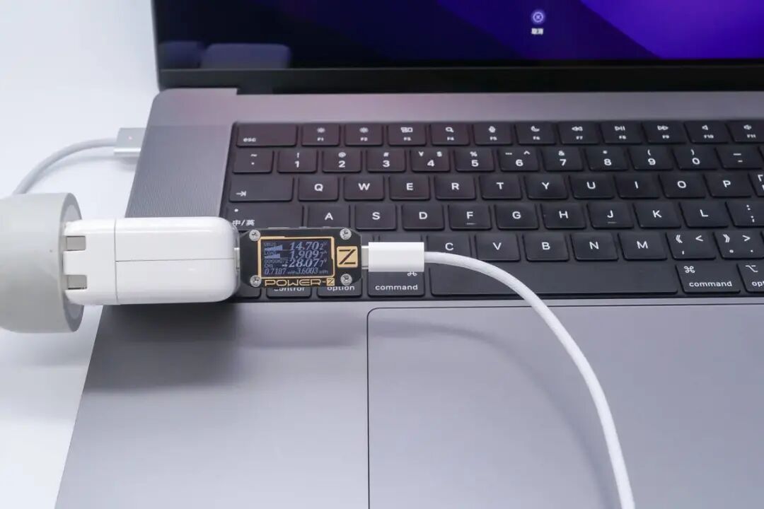除了回归的MagSafe 3磁吸充电接口外,MacBook Pro 16配备的雷电4接口同样支持为MacBook Pro 16充电,下面来看看功率情况。
