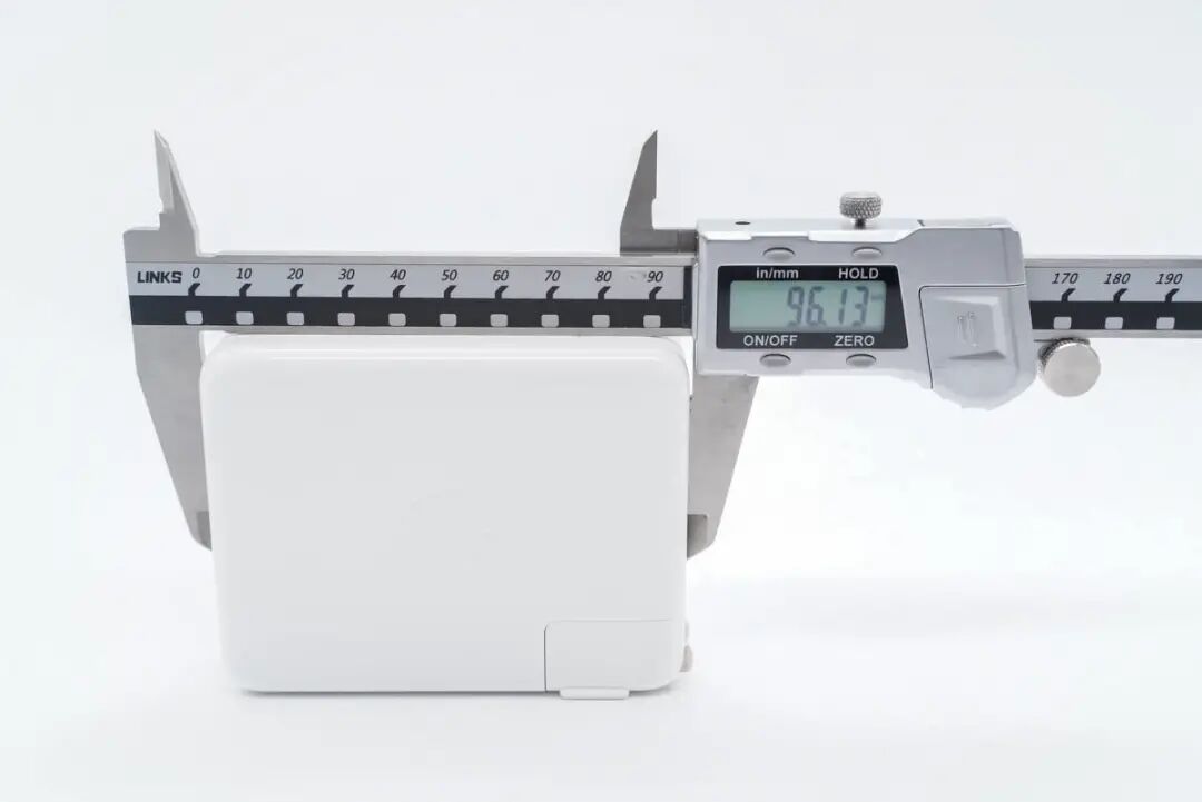 尺寸方面,使用卡尺实测充电器的长度约为96.13mm。