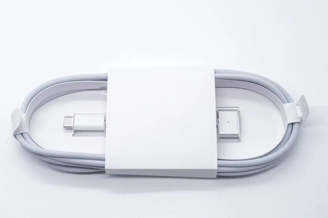 线材的两端分别为USB-C和MagSafe 3,用于连接PD充电器以及笔记本电脑上面的磁吸充电接口。