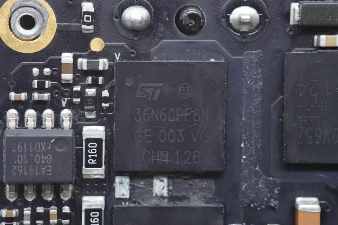 两颗ST MOS管用于PFC升压,丝印36N60PF8N。
