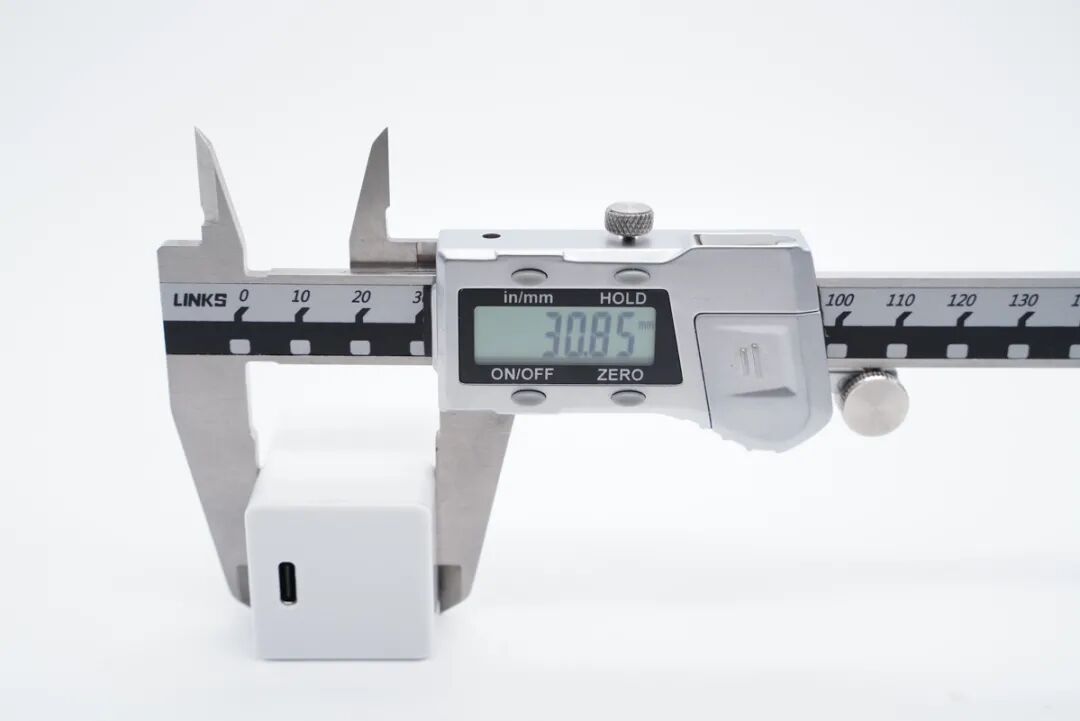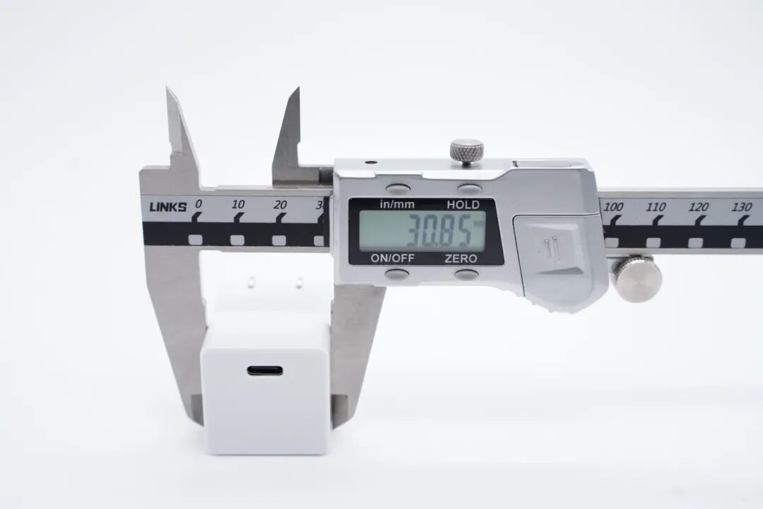 和苹果30W充电器直观对比,体积优势明显。