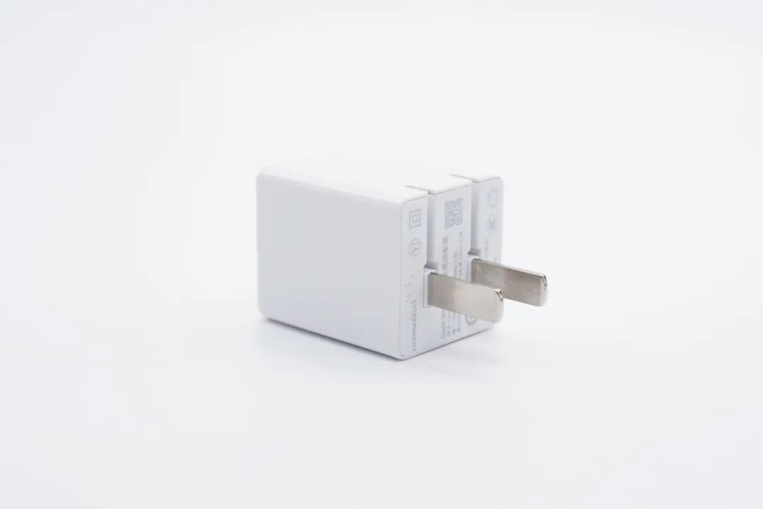 充电器采用PC材质白色外壳,整体小巧简洁,边角圆润不硌手。
