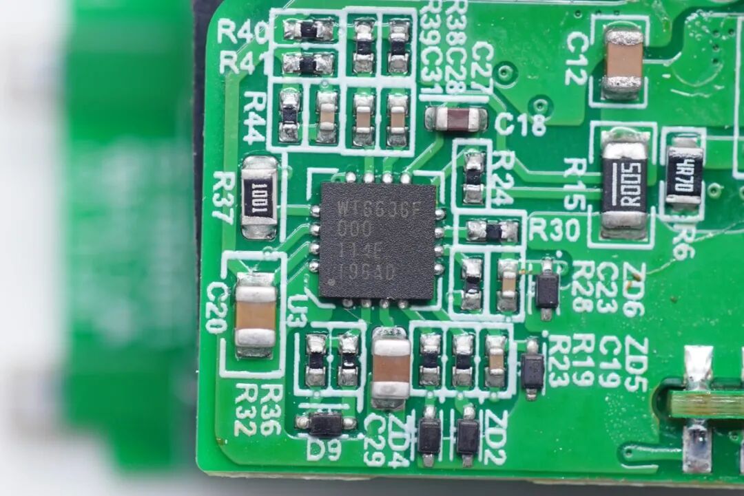 此外还采用了伟诠WT6636F高性能USB PD3.0(PPS)认证快充协议芯片,本产品是专门针对iPhone 13新机设计的,但客户若是想扩充QC、AFC、FCP、SCP、PPS等快充协议,这款充电器也能满足需求。