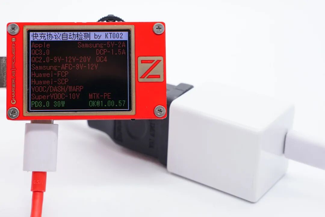 使用ChargerLAB POWER-Z KT002测得USB-C口支持PD3.0快充协议。