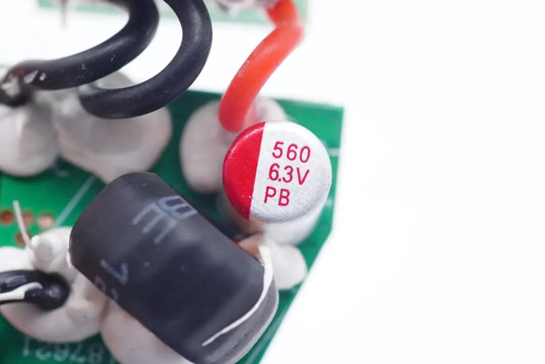 输出滤波固态电容特写,规格为6.3V 560μF。